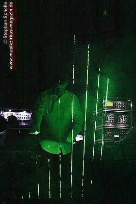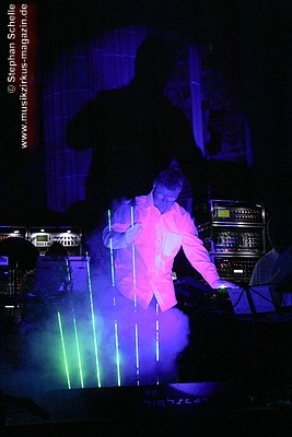 Detlef wieder die Laser los, die in Nebelschwaden die Luft bis an die