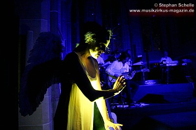 Bühne. Dieses Mal war sie ganz in weiß gekleidet, wie eine mystische
