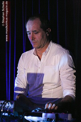Jamie dabei an seinem alten Mini Moog Ron’s sphärischen Sound. Nach