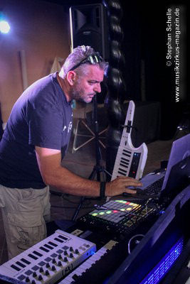 Zum Stück „ISS“ griff Erik dann zum tragbaren Keyboard. Ein sehr melodischer, etwas getragener Track, in den die Beiden dann auch einige Sprachsamples aus der Kommunikation zwischen Raum- und Bodenstation eingebaut hatten.