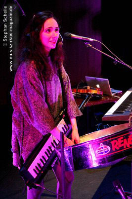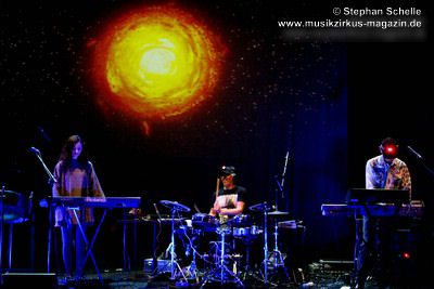 Mit „Eternally Revolving“ hatten sie dann noch eine sanfte Popnummer im Programm, bei der Lilli ans Mikro wechselte. Dieser Track hatte Songcharakter und stach damit noch weiter aus dem Set heraus. Zur Electropop-Nummer „Love Machine“ wechselte Lilli dann ans tragbare Keyboard und sorgte mit einem durch Vocoder verfremdeten Gesang für eine weitere Note. Im Song „Welcome To Love“ spielte sie dann auf der Steeldrum. Die beiden beliebtesten Stücke der Band, „Onyx“ und „Cosmic Chicken“, wurden ein zweites Mal gespielt und bildeten dann als Zugabe den würdigen Abschluss.