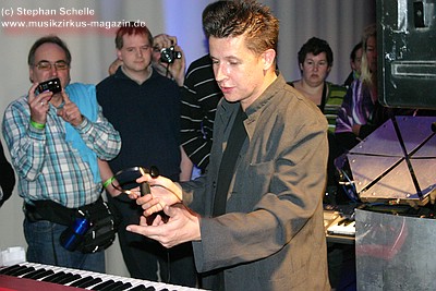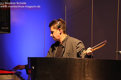 Synthie kann er dann mit dem Blasen in sein Mundstück eine Klangfarbe