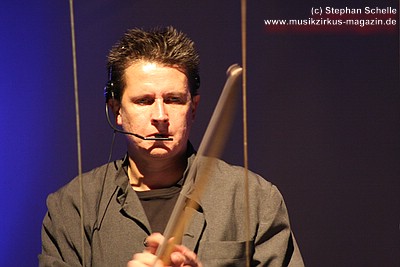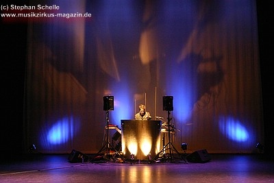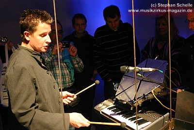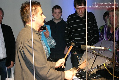 selbst gebautes Drumkit erklärte. Er beantwortete alle Fragen und ließ
