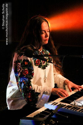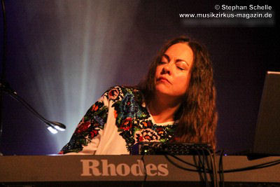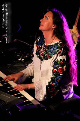 Nach diesem ersten Stück klappte Spyra seinen Rechner zu und spielte fortan nur noch auf analogen Synthesizern. Er hat wieder Spaß daran gefunden mit diesem alten Equipment zu arbeiten um aus dem organischen Prozess heraus Sequenzen zu entwickeln, während er die Instrumente spielt. Zeitweise erinnerten Passagen in den Stücken an den frühen Klaus Schulze. Schnell wurde deutlich, dass hier wahre Könner ihrer Instrumente am Werk waren. Das zweite Stück „Dusk“ enthielt ein von Roksana auf der Mundorgel gespieltes Intro, das recht ethnisch klang und aus ihrer Ukrainischen Heimat zu stammen schien.