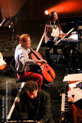 Beim ersten Stück, dem Titeltrack seines aktuellsten Albums „Staub“, steuerte er Samples und Rhythmen mit einem Sequenzer auf seinem Computer, während Roksana herrliche, melodische, teils klassische Pianomotive beisteuerte. Das würzte Thilo dann mit improvisierten, akzentuiert und auch experimentell gesetzten Klängen seines Cellos. Dabei strich er nicht nur über die Saiten seines Instrumentes sondern zupfte sie auch oder bearbeitete sein Musikinstrument rhythmisch.