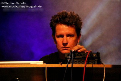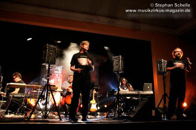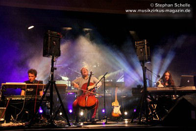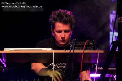 Weitere improvisierte Tracks folgten. Manchmal melodisch oder treibend, dann wieder verstörend und melancholisch wirkten die Stücke, übten aber eine ungemein faszinierende Stimmung im Publikum aus. Es ist bezeichnend für die fesselnde Musik des Trios, dass die Ränge im Publikum während des kompletten Konzertes, das nicht immer einfach zu konsumieren war, besetzt blieben. Aber wie sagte Frank Gerber am Ende des Festivals so treffend: „Diese Art von Musik muss die Szene aushalten können.“ Recht hat er, denn sie bereichert das Genre und zeigt darüber hinaus neue Wege auf.