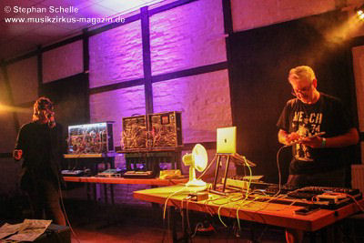 Danach folgte ein krasser Wechsel in Richtung Electro-Pop. Zusammen mit James Knights, den Steve schon seit Jahren kennt, performte er den Track „Stars“ vom Album „Across The Ice“ seines Projektes Arctic Sunrise. Bei Arctic Sunrise hat die Stücke Torsten Verlinden eingesungen, bei dem Gig übernahm James den Gesangspart. Das schloss direkt an Knights Auftritt an. Obwohl die Beiden sich beim Electronic Circus-Festival das erste Mal persönlich getroffen haben, harmonierten sie sehr gut zusammen.