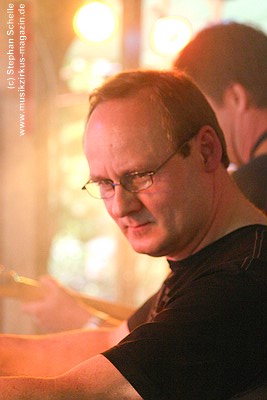 E-Drums, die hinter ihm aufgebaut waren, mit in die Musik ein. Das