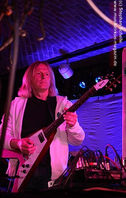 E-Gitarre (eine V-Gitarre, wie man sie auch von Wishbone Ash kennt)