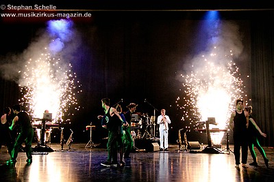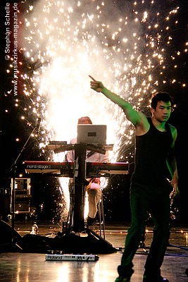 sich durch Nebelschwaden zogen und pyrotechnische Einlagen wie brennende