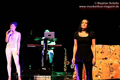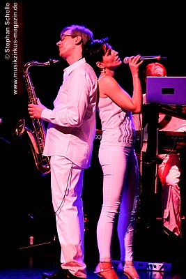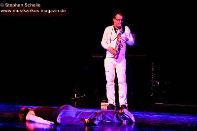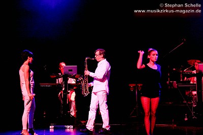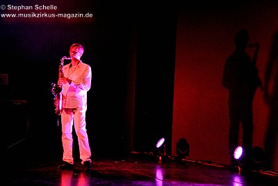 Andreas Saxophon spielend quer über die Bühne zu Leyla. Die beiden