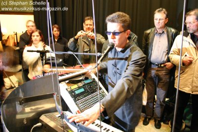 Vorhang wieder öffnen und so umringten ca. 30 Fans die Keyboards und das