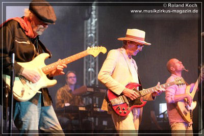 Die fünf sehr erfahrenen Musiker gaben sich gegenseitig genug Raum um ihre Virtuosität zu demonstrieren, aber im Zusammenspiel von allen ergab sich ein homogener Klangteppich. Damit beschworen sie den Geist Aladdins aus der Wunderlampe. Auch zwei circa 10-minütige komplette Stromausfälle der Bühne und Technik brachten sie nicht aus der Ruhe, bei der Bühnen-Crew dagegen war es wie in einem Ameisenhaufen. Routiniert setzte Agitation Free nahtlos wieder an der Stelle an, an der unterbrochen wurde, von Pause auf Start, und es läuft wieder.