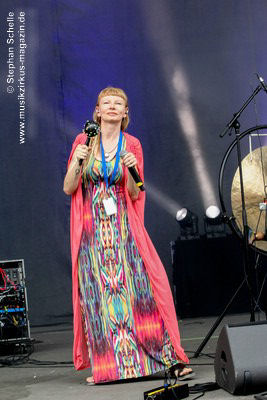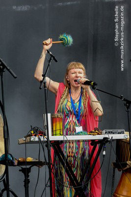 viele unbemerkt - Marta Wojtas mit einer Rassel und dem Mikro, in das sie