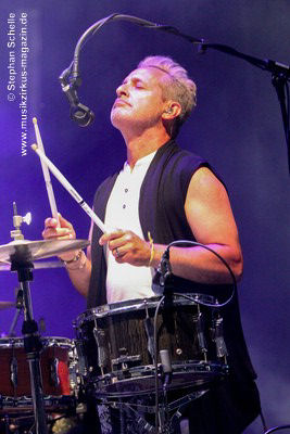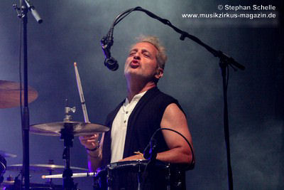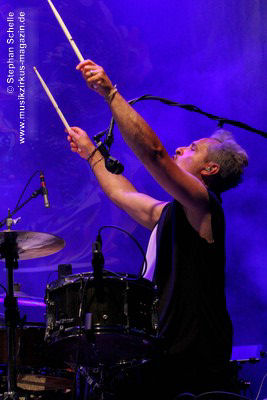 ungewöhnliche Anordnung des Schlagzeuges. Ähnlich wie beim