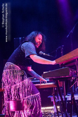seine extrovertierte Spielweise, die ihn auch mit einem tragbaren Keyboard