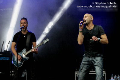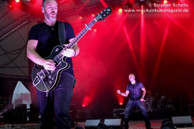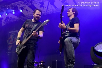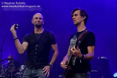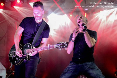 Podest an den Bühnenrand und ließen ihre beiden Gitarren in einer