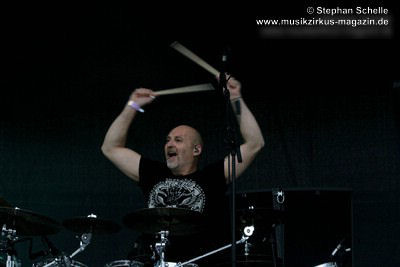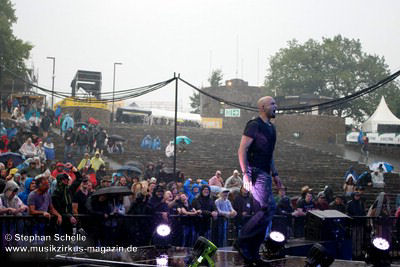 Konzertes ein heftiger Regenschauer über dem Festivalgelände. Die