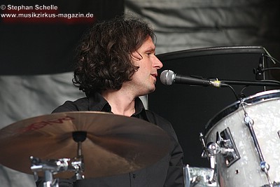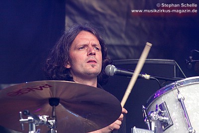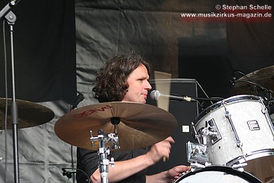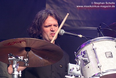 auf die Bühne um - nur in diesem Song - eine Trommel, die am Bühnenrand