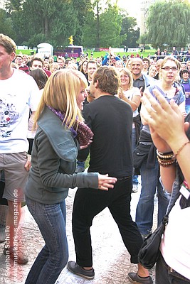 rhythmisch mitzuklatschen. Eine weitere Person (ein Roady?) kam zu dem Song