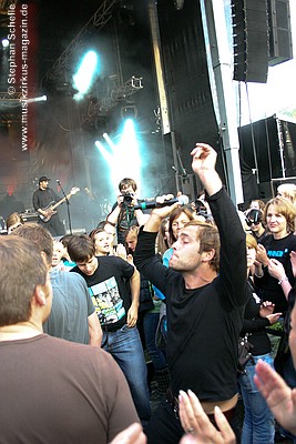 Absperrung um mitten im Publikum weiter zu singen. Dabei legte er auch mal