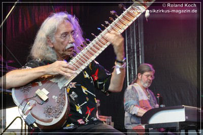elektrische Sitar, klassisch sitzend gespielt, kommt natürlich zum Einsatz,