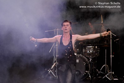 richtige Rampensau, denn er sprang auf der Bühne rum und animierte das