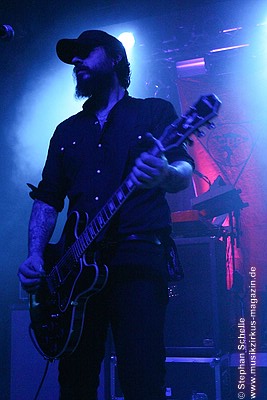 Neben dem aktuellen Werk „(Mankind) The Crafty Ape“ bestand ein Großteil aus den Stücken der Alben „I Vigilante“ und „200 Tons Of Bad Luck“. Während der Instrumentalteile zog sich der Sänger immer mal wieder zurück, bei die anderen sechs sich so richtig austoben konnten. Dabei entwickelten sich unglaublich intensive Momente, die alle Besucher aus der Realität zogen. Auch wenn bei diesem Konzert keine Atmosphäre mit rhythmischem Klatschen aufkam, so war doch zu erkennen, dass das Publikum von Crippled Black Phoenix in eine Art Trance versetzt wurde. Zahlreiche Köpfe und Körper wogen sich so im Takt der Stücke.