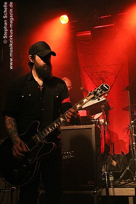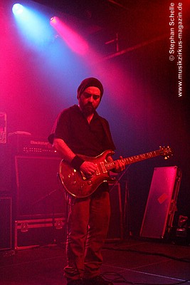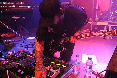 Ganz ohne große Showelemente legten die Briten gleich los. Es entwickelte sich ein sehr intensives Konzert, bei dem für meinen Geschmack lediglich die Lautstärke nicht der Location angepasst war. Aufgrund dessen waren die Nuancen leider nicht herauszuhören, da das Konzert nur mit Ohrstöpseln genossen werden konnte. Das finde ich sehr schade, denn die beiden Gitarristen Greaves und Demata spielten sich des Öfteren die Bälle zu, vor allem in den etwas ruhigeren Phasen. Und genau dies kam dann akustisch nicht wirklich rüber.