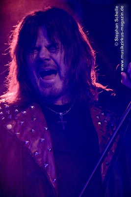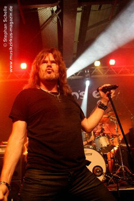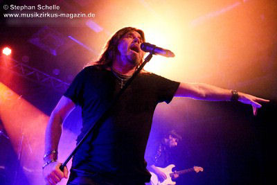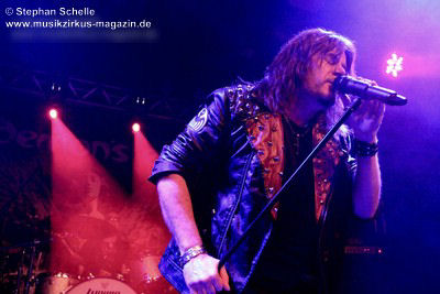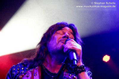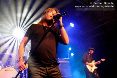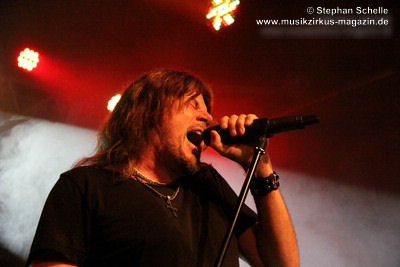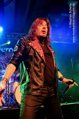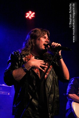 Sänger Doogie White (er hat das Rainbow Album „Stranger In Us All“ eingesungen), Gitarrist Mark Zyk, Bassist Maik Keller, Schlagzeuger Andree Schneider und der neue Keyboarder Gert-Jan Naus betraten zu dem Intro „Epic“ vom neuen Album die Bühne und legten mit der Eigenkomposition „Road To Glory“ mächtig los. Schnell wurde klar, dass Demon’s Eye mit dem Schotten Doogie White den perfekten Sänger und Frontmann haben. Neben diesem Stück streuten sie noch vier weitere Songs vom neuen Album, sowie mit „Far Over The Rainbow“ einen Song ihres Debütalbums in das Set ein.