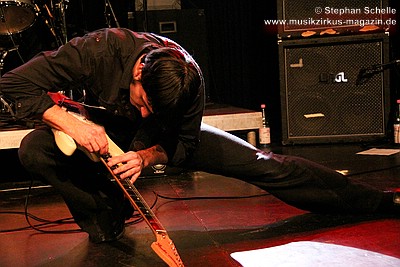 nutzte Mark einen Stahlträger am Bühnenrand, an dem er seine Gitarrensaiten
