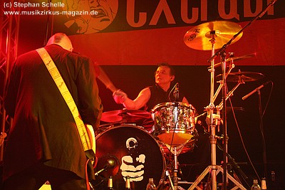 die Bühne bewegte. Und Rolf Möller hatte am Schlagzeug ganze Arbeit zu