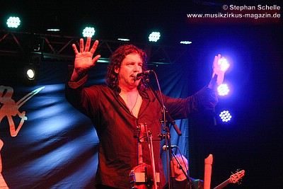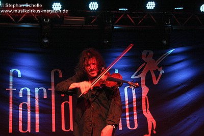 farfarello ist eine Band, die über das Jahr verteilt eine hohe Anzahl an Konzerten in unterschiedlichen Besetzungen spielt. Im Februar 2011 hatte ich das Vergnügen sie erstmals live zu erleben, seinerzeit als Trio bestehend aus Mani Neumann (Geige, Flöten), Ulli Brand (Akustikgitarre) und Nippy Noya (Perkussion). Am 30.09.2011 gaben farfarello - nach sechsjähriger Pause - wieder ein Gastspiel im nordrhein-westfälischen Soest. Zu ihrem Auftritt im Alten Schlachthof kamen zahlreiche Besucher, die den Auftritt sichtlich genossen.