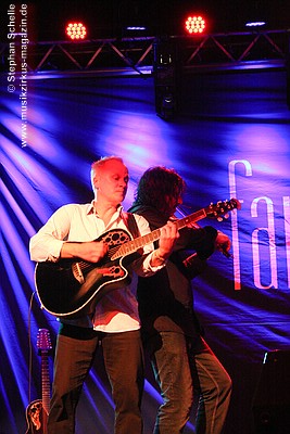 Als Zugabe gab es dann noch die „Rhapsodie für Marcin“, das Mani mit den Worten einleitete: „In welcher Gegend sind wir hier eigentlich? Sauerland oder Nordrhein-Westfalen? Ich habe das nächste Stück quasi für die Gegend zwischen Westfalen und Sauerland geschrieben, also für Soest. Es heißt ‚Rhapsodie für das Niemandsland’“. Nach dieser ersten Zugabe folgte noch das Stück „Ein Freund“, bei dem Mani mit einem ausufernden, zarten und einfühlsamen Intro begann. Hierzu verließ er erneut die Bühne um im Publikum zu spielen. Nach einigen Momenten stieg dann Ulli an der Gitarre ein und DIA betrat die Bühne um diesen Abschlusssong zu singen. Wieder so ein Gänsehauttitel, der das Konzert abrundete. Nach mehr als zwei Stunden war dann dieses intensive und mitreißende Konzert beendet. Unterstützt wurden farfarello von einer sehr ansprechenden Lightshow, die die Musiker ins rechte Licht setzte.