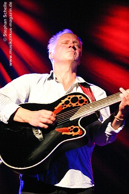 Das Highlight des Abends war für mich allerdings das Lied „Durchzug“. Was dieses Stück so besonders machte war das minutenlange Gitarrensolo von Ulli Brand, der hier sein ganzes Können zur Schau stellte. Der Clou an diesem Solo war aber, dass Ulli eine Gitarrenseite riss, die er, während er das Solo weiterspielte, auswechselte. So etwas habe ich bisher noch nicht gesehen. Und das Stimmen der neuen Seite baute er auch noch in sein Solo ein, so als wenn es das Natürlichste von der Welt sei. Für dieses Solo erntete er dann auch brandenden Applaus des Publikums, das sichtlich aus dem Häuschen war.