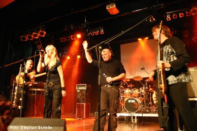 Das Quintett Flamborough Head aus den Niederlanden eröffnete den Samstag mit ihrem Konzert, das erste auf deutschem Boden. Und Margriet Boomsma (Gesang, Flöten, Percussion), Marcel Detrix (Bass), Eddie Mulder (E-Gitarre und Gesang), Koen Roozen (Schlagzeug) und Edo Spannunga (Keyboards) heizten das Publikum mit ihrem melodisch/symphonischen Rock mit 70’er Jahre Einflüssen mächtig ein. Neben einigen Pink Floyd-Einflüssen waren aber auch
