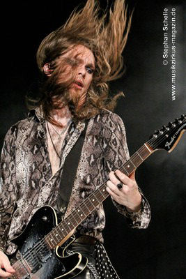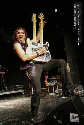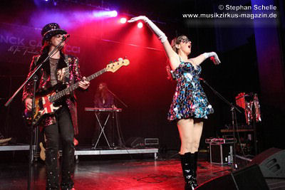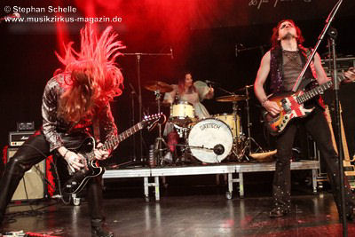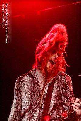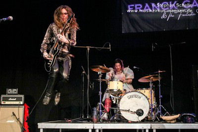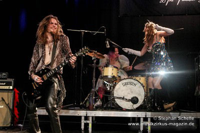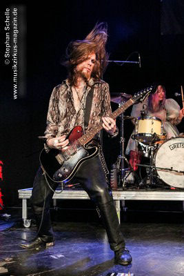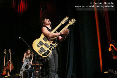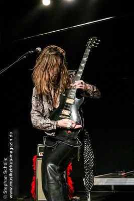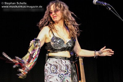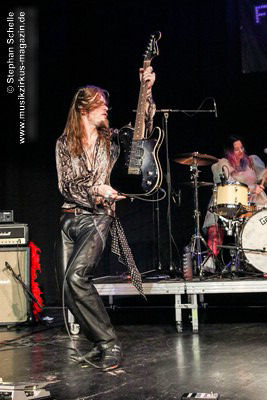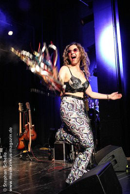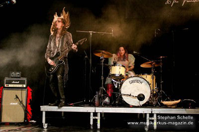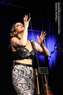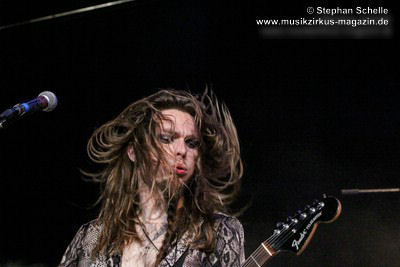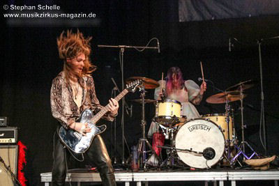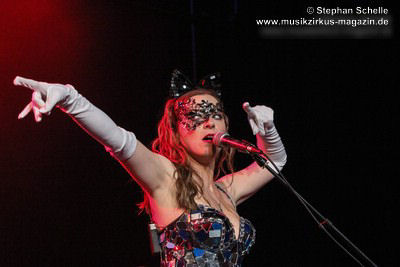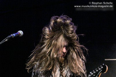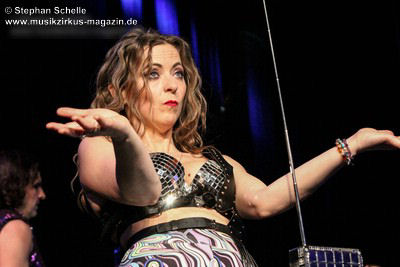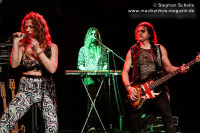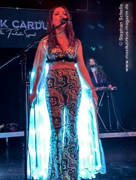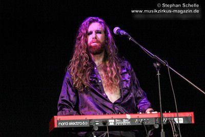 Ein absoluter Blickfang ist natürlich Mary Reynaud. Ob bei der „Alice’s Eriee Dream”-Show, wie sie über die Bühne fegt und Musiker und Publikum fest im Griff hat, „The Angel” performt oder die Art und Weise, wie sie das Theremin spielt, es ist immer ein Erlebnis. Und Gitarrist Barth Sky ist eine wahre Rampensau. Neben seinem perfekten und ausdrucksstarken Gitarrenspiel wirbelte er sein langes Haar ständig durch die Luft, zog Grimassen, streckte wohlwollend die Zunge raus oder sprang durch die Luft. Es war eine schiere Freude ihm zuzusehen.