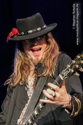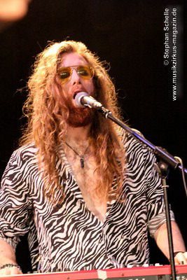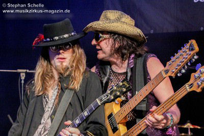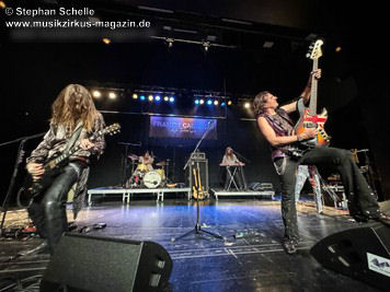 Dem schloss sich dann direkt „The Ecstasy Of Gold“ an, ein Cover des für seine Italowestern-Soundtracks bekannten Komponisten Ennio Morricone. Hier sorgte Mary mit ihrem lautmalerischen Gesang für Gänsehaut, während Cédric die Harmonien auf dem Keyboard spielte und Barth und Franck dies mit westernmäßigen Licks unterstützten Und im treibenden Abschluss schwenkte dann das Publikum die Hände hin und her.