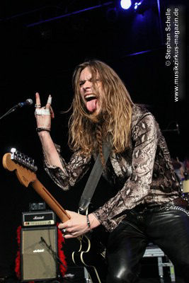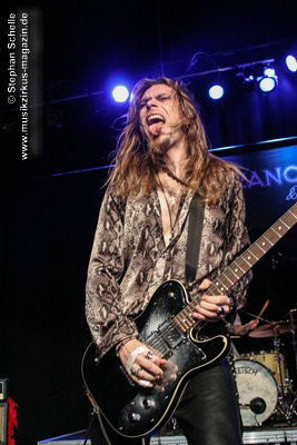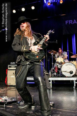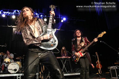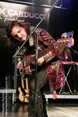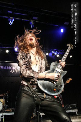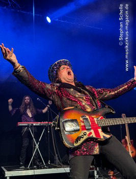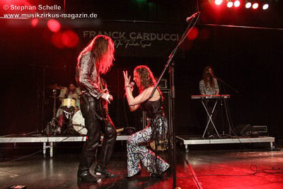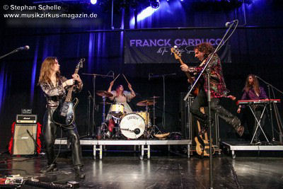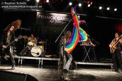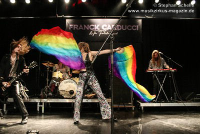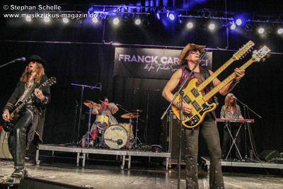 Zu einem mehrminütigen Intro, das aus kurzen Schnipseln von Songs bekannter Acts wie The Beatles, Bruce Springsteen, David Bowie, Michael Jackson, Aerosmith, Genesis und vielen anderen mehr bestand, bis ein Schnipsel von Franck Carducci auftauchte und wie ein Durchsuchen von Radiosendern klang, kam die Band dann auf die Bühne und legte sofort druckvoll mit dem Song „Slave To Rock ‚N’ Roll“ los. Franck und seine Fantastic Squad machten von der ersten Sekunde an deutlich, dass sie den Saal rocken und dabei keine Gefangenen machen wollten. Das war vom ersten Moment an atemberaubend und genau so großes Kino wie am Tag zuvor mit den Von Hertzen Brothers. Beide Bands waren für mich die Gewinner des Festivals. Und so fragte nicht nur ich mich, warum dieser kraftvolle und emotional so mitreißende Act nicht den Headliner machte.