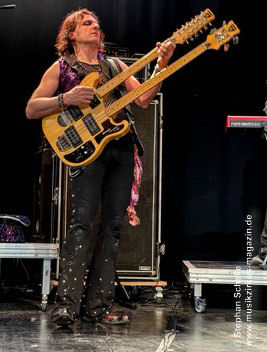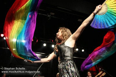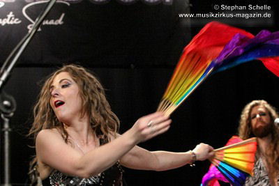 Recht proggig mit einem tollen Groove zeigte sich „A Brief Tale Of Time“ bei dem Mary an der Akustikgitarre agierte und Cédric Selzer Orgelartige Sounds beisteuerte während Franck an der Doppelhalsgitarre wirbelte. Der Song bestach auch durch herrlichen Satzgesang. Mary wirbelte dabei mit regenbogenfarbigen Tüchern auf der Bühne. Ein echter Ohrwurm.