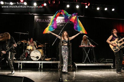 Das Quintett bestehend aus Franck Carducci (Gesang, Gitarre), Mary Reynaud (Gesang, Akustikgitarre, Theremin, Percussions), Barth Sky (Gitarre, Backgroundgesang), Cédric Selzer (Keyboards, Backgroundgesang) und Léa Fernandez (Schlagzeug) verzauberte auch die Besucher im Neuberinhaus mit ihrer grandiosen Show.
