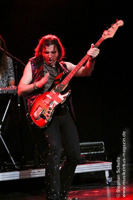 Nach dem AOR-mäßigen „The Limits Of Freedom“ kam dann ein Klassiker der Band, „Alice’s Eerie Dream“. Hierin wird die „wahre Geschichte“ von „Alice im Wunderland“ erzählt. Die Band bringt das Ganze immer in einer leicht frivolen aber humorvollen Art auf die Bühne. Dabei wirbelte Mary wie eine Domina mit einer Reitgerte über die Bühne und hatte vor allem ihre männlichen Kollegen fest im Griff. Das Ganze gipfelte dann in einem von Franck am Bass und Léa Fernandez am Schlagzeug gespielten Discogroove zu dem dann Mary mit Barth und Cédric tanzte. Ein grandioser Longtrack, an dessen Ende Franck seinen Bassgitarrenhals am Mikroständer rieb, um so verzerrte Klänge zu erzeugen.