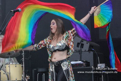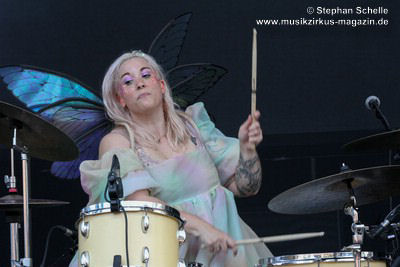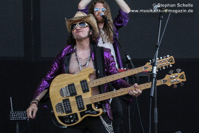 Fernandez (Schlagzeug), lieferten die wohl irrste Show des Festivals. Während