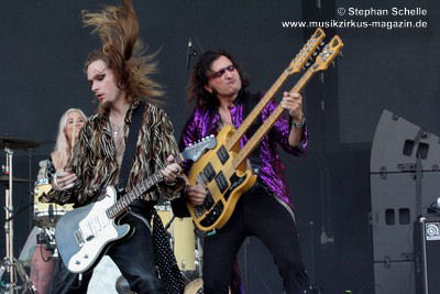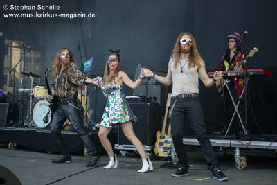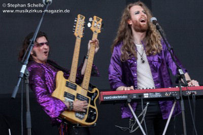 sie musikalisch in einer Mischung aus Rock, Prog, Pop und Glamrock überzeugten,