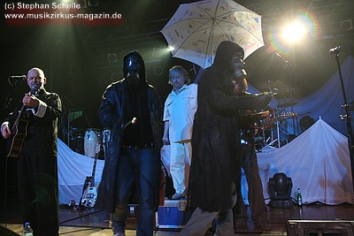 Dann kam als erster Höhepunkt des Abends (eigentlich gab es nur Höhepunkte) die Zusammenfassung von Rockpommel’s Land, die immer wieder für Begeisterung sorgt. Der Maraboo, der bei der Show nicht fehlen darf, hatte sich dieses Mal (wie schon zwei Wochen zuvor beim Gig in Gießen) sein Kind, nämlich ein Küken, mitgebracht. Eine wirklich schöne, schräge Nummer.