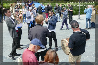 versammelt sich das Guca-Gebläse und eine vielköpfige Rocktruppe. Die Bühne