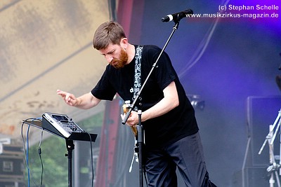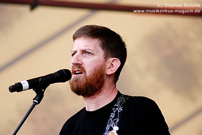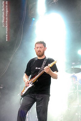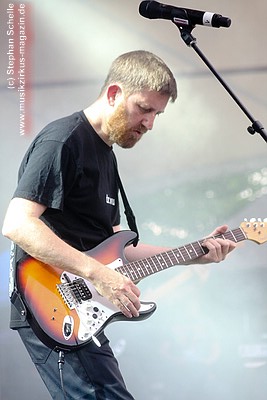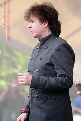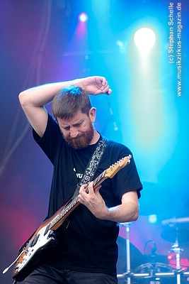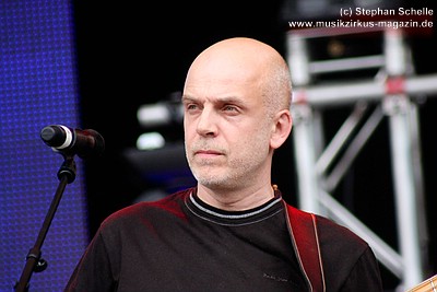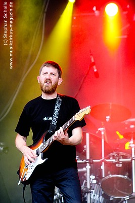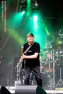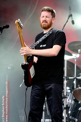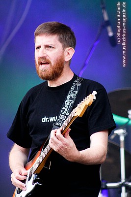 Michael Holmes an der Gitarre, der ebenfalls durch Gesten und Grimassen