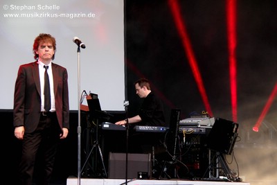 von Animationen auf der rückwärtigen Leinwand, die aber aufgrund des