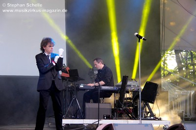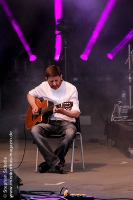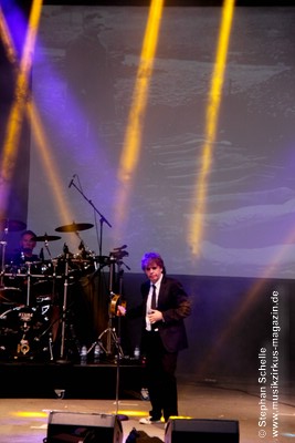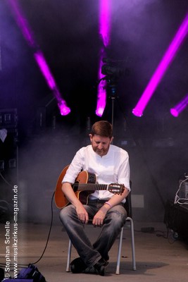 und wunderbar melancholisch spielte. Dazu saß er in der Bühnenmitte auf
