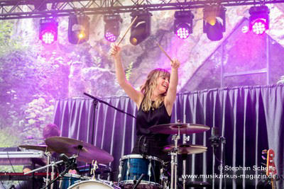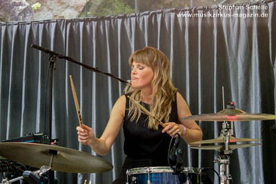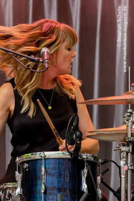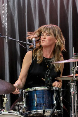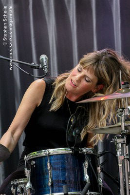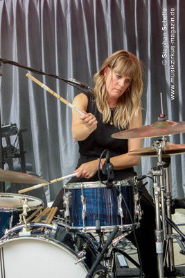 Rockszene anzutreffen. Eine Schlagzeugerin, die auch den Leadgesang übernimmt,